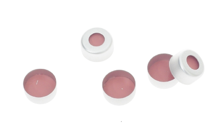 製品名 | 11mm シルバークリンプアルミキャップ、透明 PTFE / オレンジシリコーンセプタム付き |